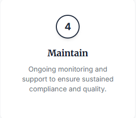 We follow a structured approach to ensure your compliance journey is clear, manageable, and successful.